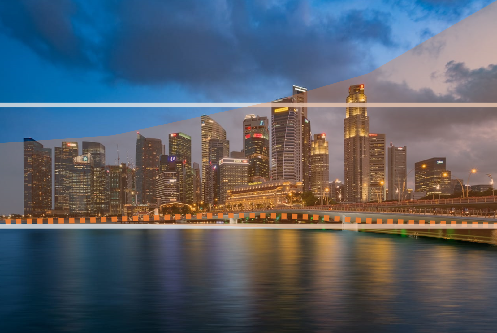 – A. 画面分区:画面分为前景(水面及灯光倒影),中景(城市建筑与桥梁),背景(云层与夜空)。